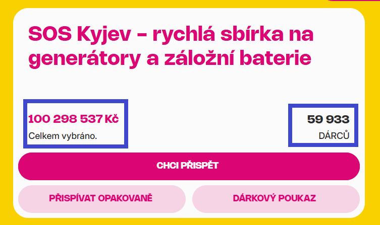 Nyní naprosto zásadní SBÍRKA pro Kyjev v časech nouze (https://www.zbraneproukrajinu.cz/kampane/sos). Všichni kdo můžete hoďte korunou ať tam ty děti nemrznou kvůli rusáckým teroristům a jejich bombám!